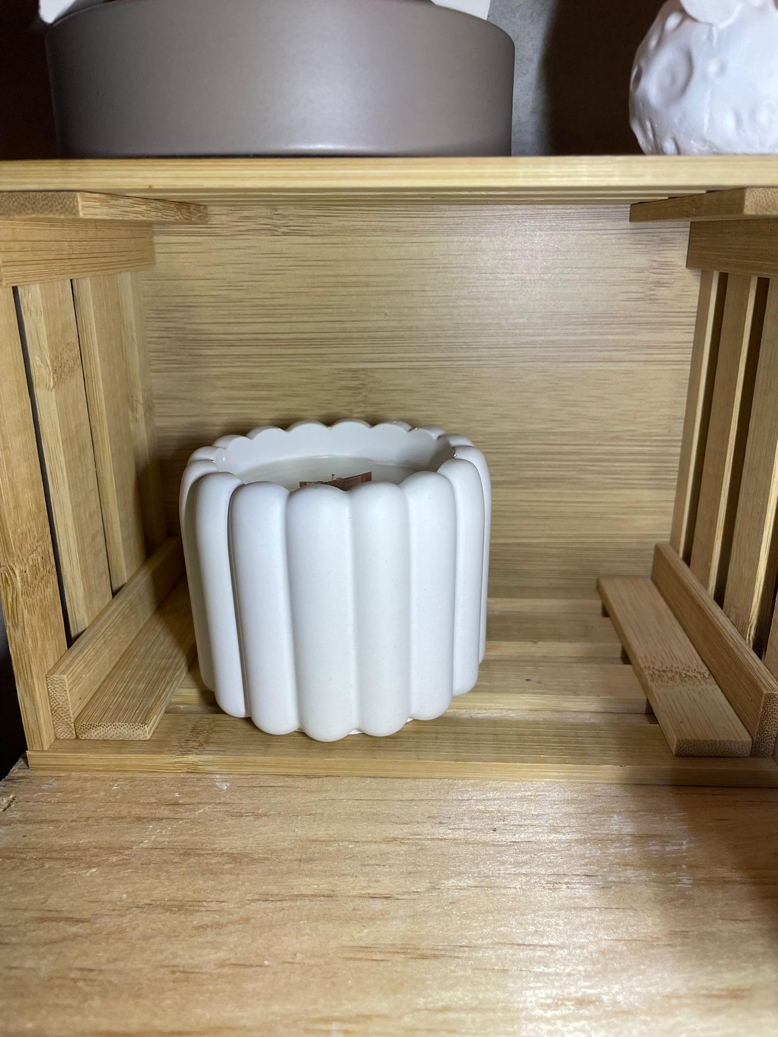 Chaque bougie que je propose est fabriquée à la main, avec soin et passion, dans mon atelier. Tous les contenants sont réalisés par mes soins, soit en argile, soit en plâtre résine, produit français et de qualité supérieure.